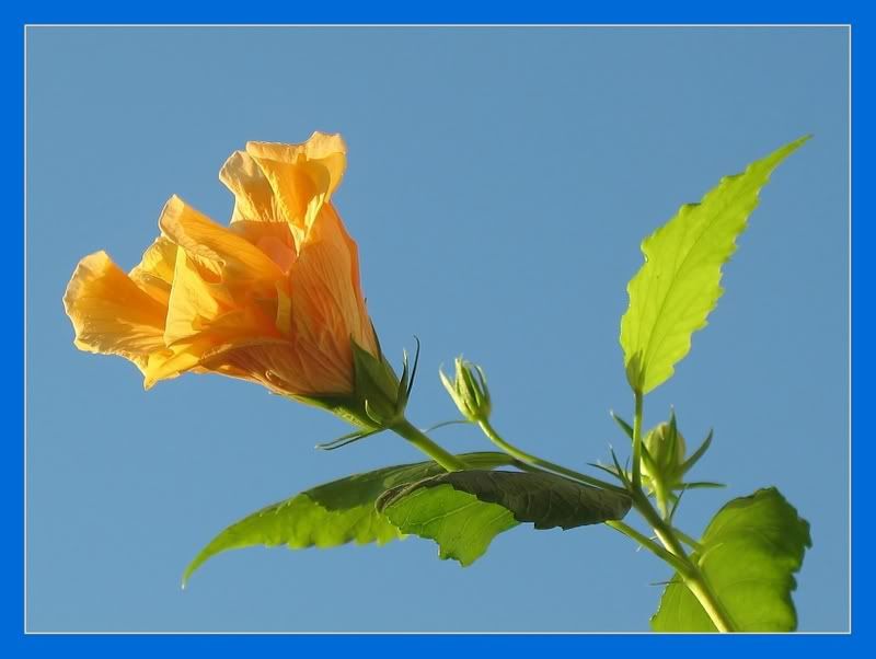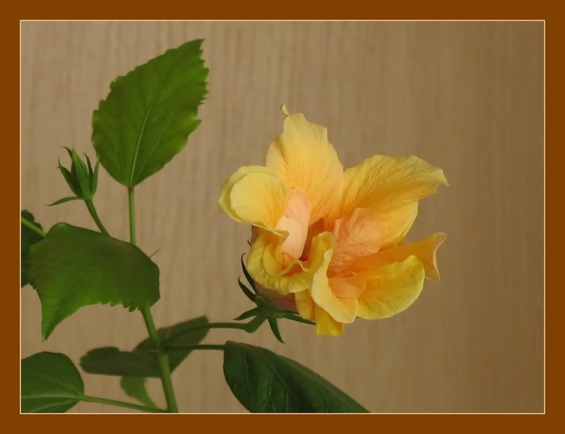 Dar nu scapti nici azi fara poze, fiindca a inceput sa se deschida hibiscusul portocaliu: