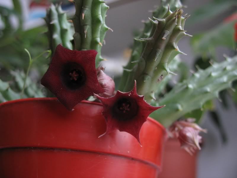 Huernia e o planta inrudita cu stapelia (Steaua Serifului), numai ca huernia are florile mici si difera la culoare.
