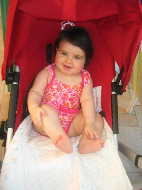 Rebecca a urlat ca din gura din sarpe cand am pus-o in colacelul ei,asa ca am plimbat-o prin apa pe brate.In jacuzzi i-a placut mult si chicotea spre deliciul celorlalti, a mancat bine si dupa 3 ore a picta de somn.Pana maine nu se mai trezeste![]()